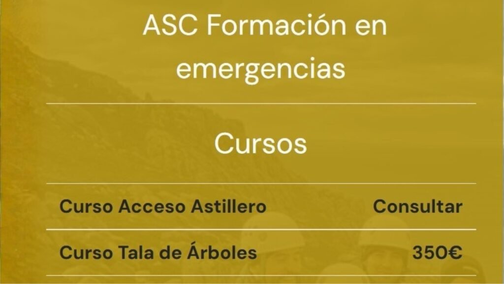 Ofrecemos formación en rescate vertical, autorescate, espeleosocorro, incendios, excarcelación, soporte vital básico y DESA, siguiendo siempre las recomendaciones de la ICAR y SEMICYUC. Además, contamos con experiencia en la creación de espacios cardio/protegidos y programas de formación tanto para profesionales como para la población general, colaborando con ayuntamientos como Tui, Camariñas, Meis, Arzúa o Mondoñedo.